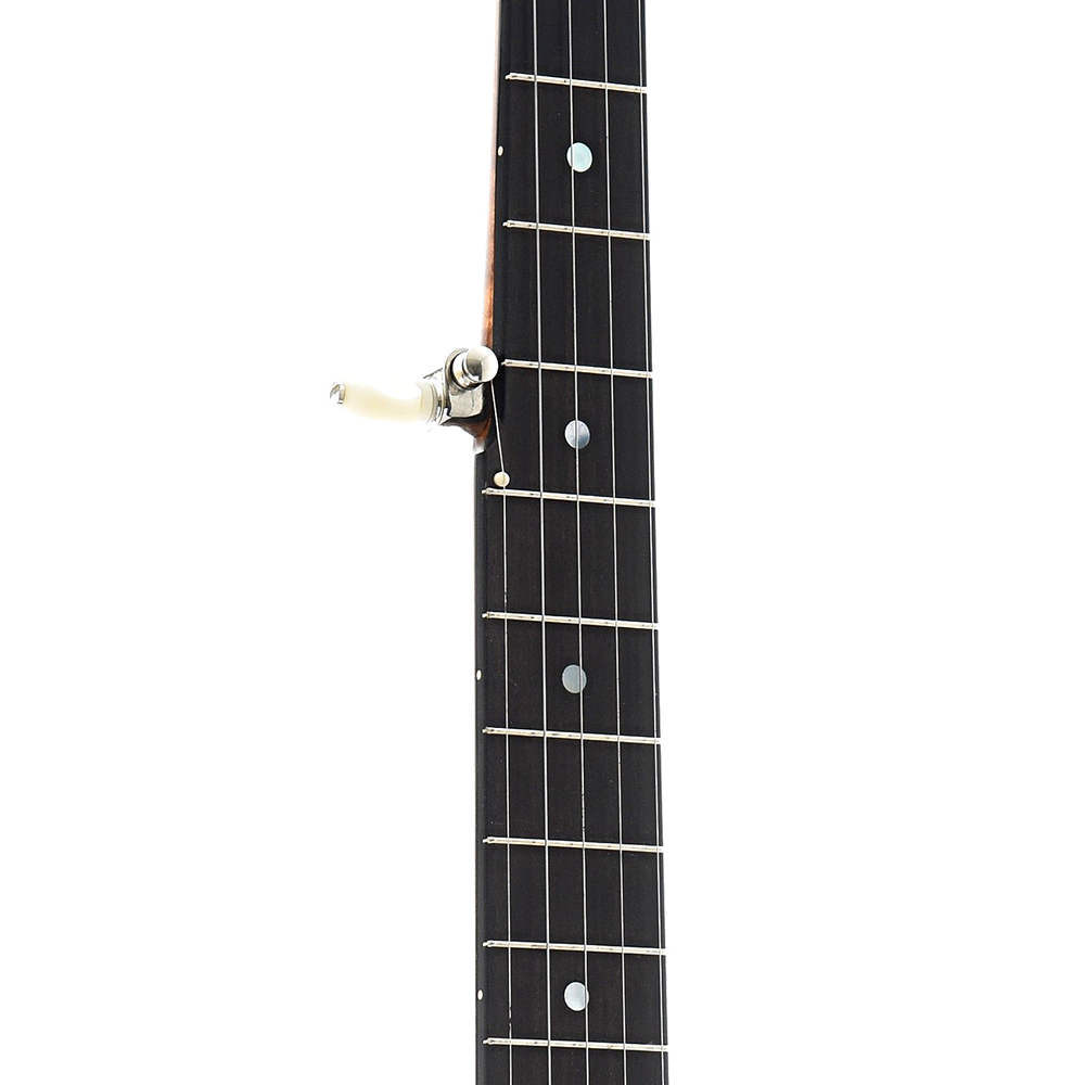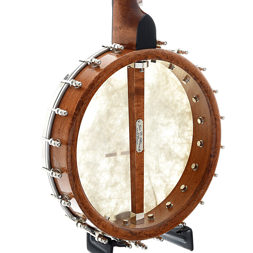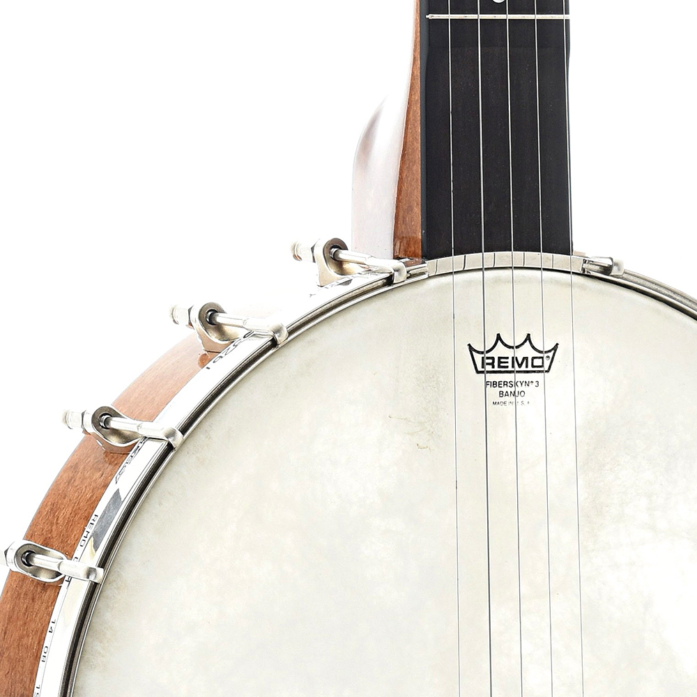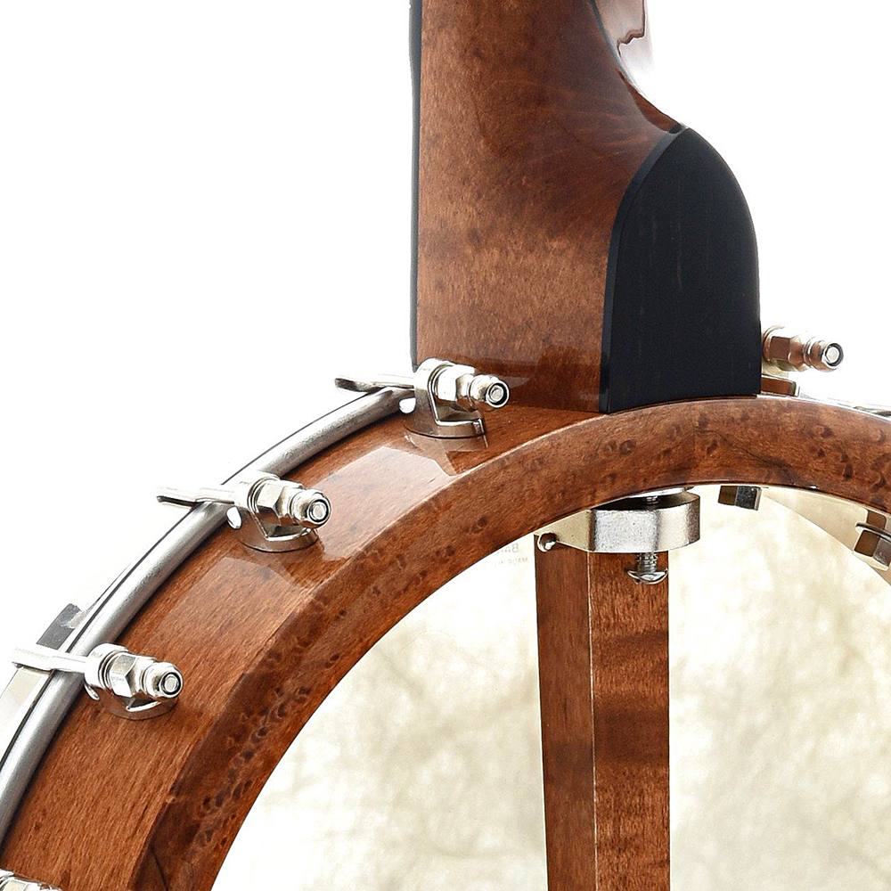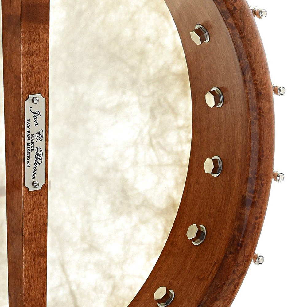 The ¾ inch 3 ply hard maple rim makes for a stable platform for the neck and the rolled brass tone hoop. The banjo is very even tonally from low notes on the 4th string to highs on the 1st. Whether you are playing up over the neck or down over the bridge the balance is there. Volume and tone quality are even up and down the fret board. It easily produces string band volume. The neck, well shaped by hand, promotes ease of playing.